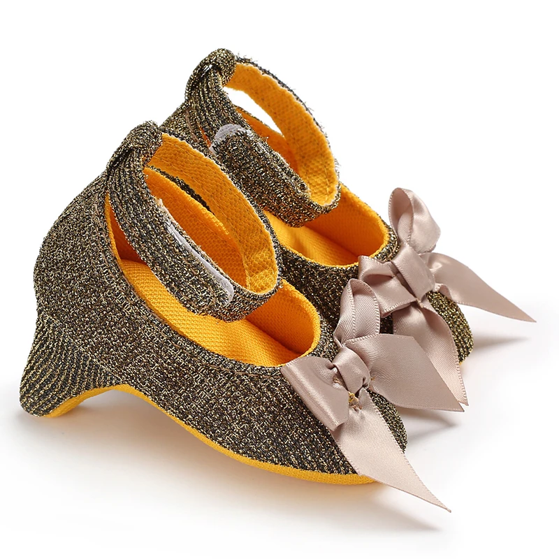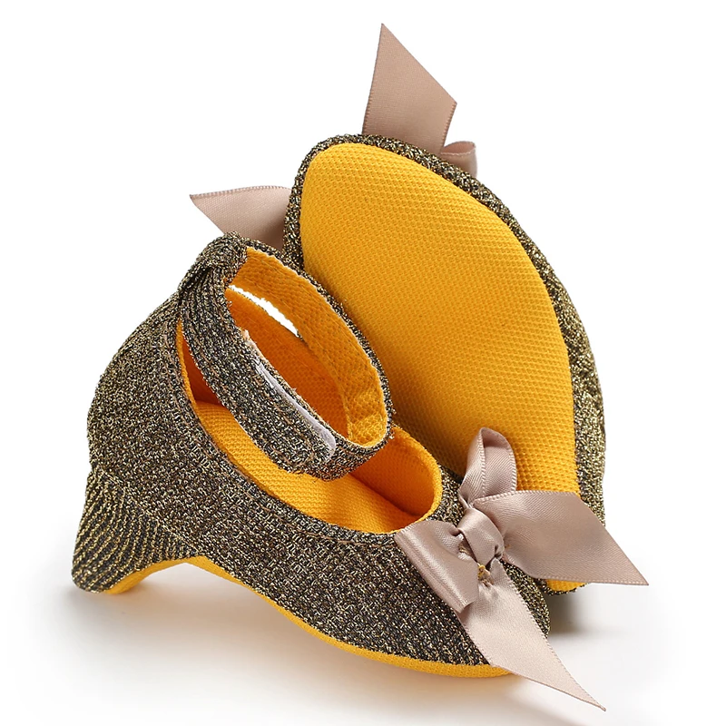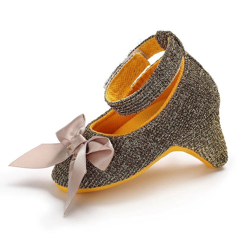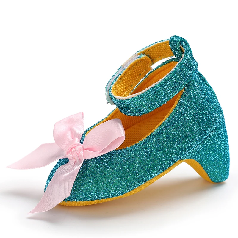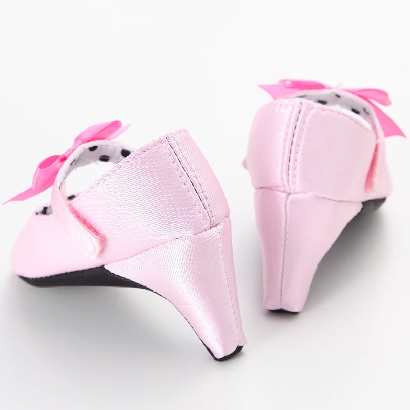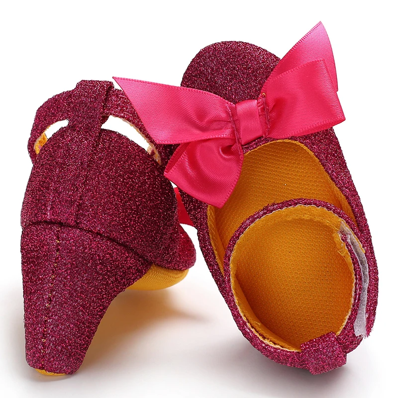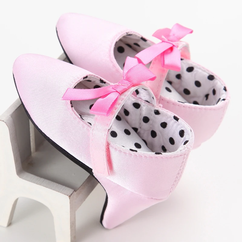 Princess Style Newborn Baby Girl Cute Shoes Solid Color Bow High Heels First Step Toddler Walk Party Dress Footwear