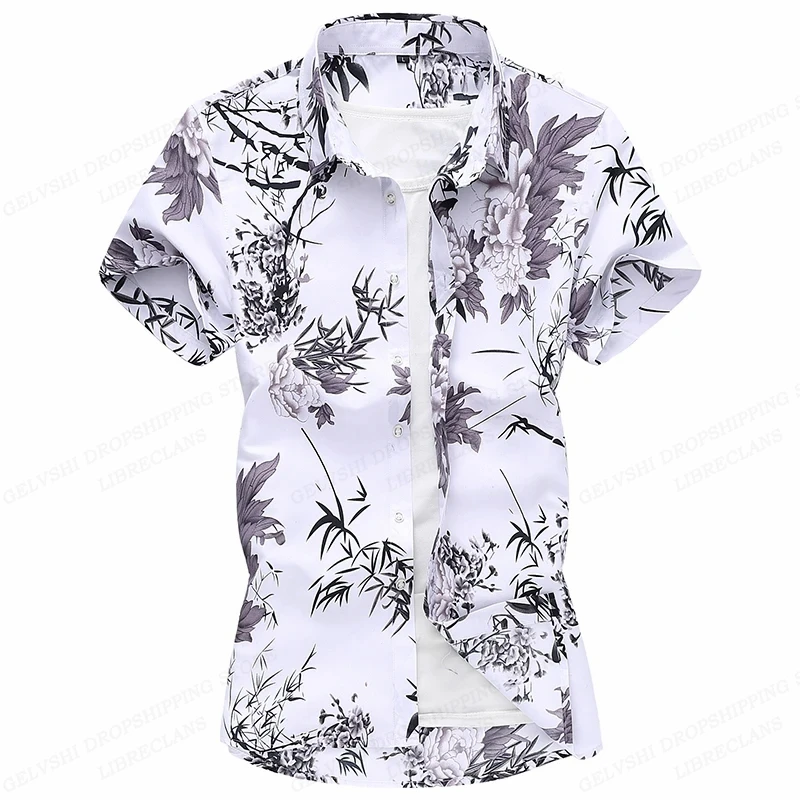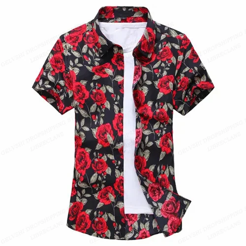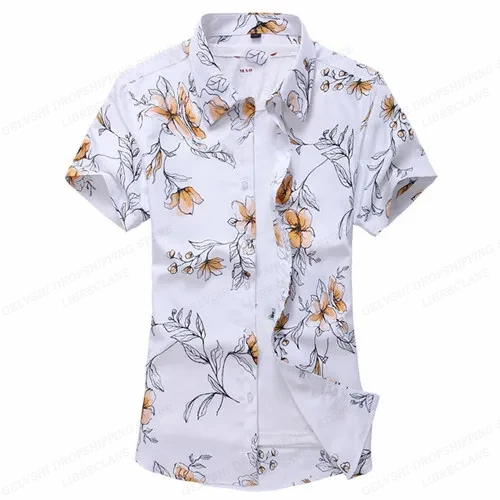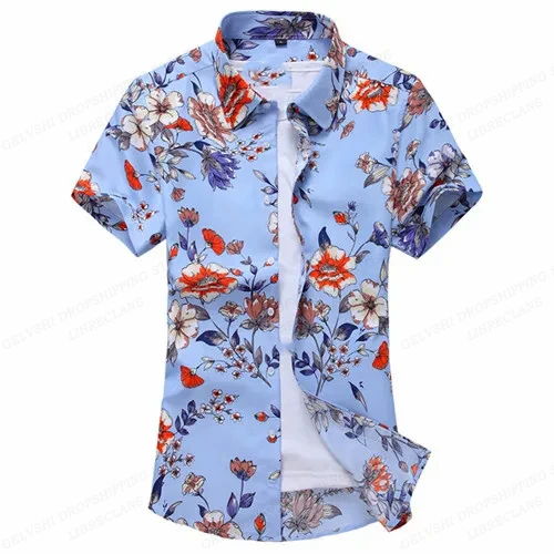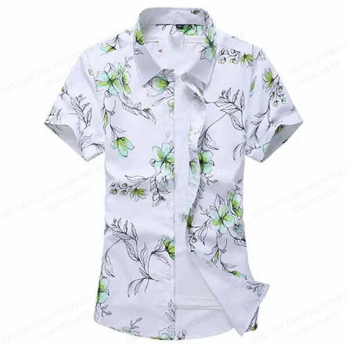 Summer Floral Hawaiian Shirts Men Fashion Short Sleeve Shirt Flower Blouse Turn Over Collar Casual Lapel Camisas Men's Clothing
